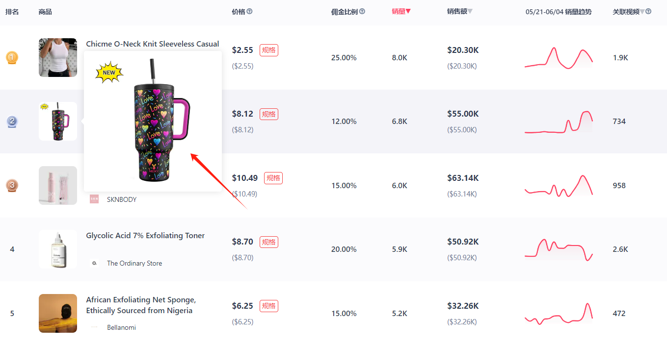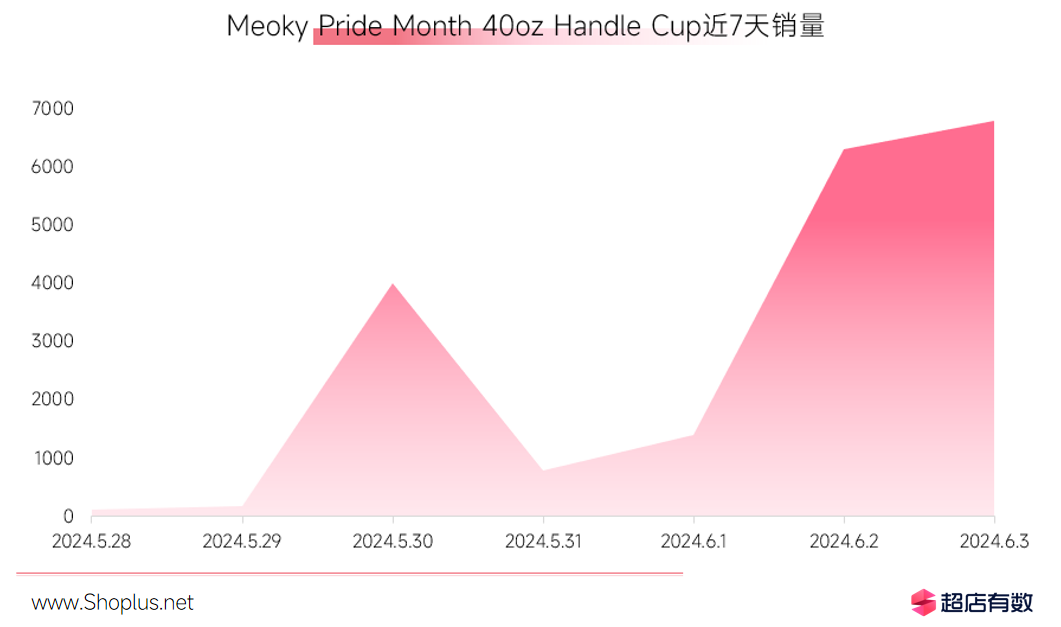 据超店有数显示,本周一款“LGBTQ”水杯在TikTok上的销量突飞猛进,6月3日的销量超过6.8千单,销售额达到5.5万美元(近40万人民币)。
