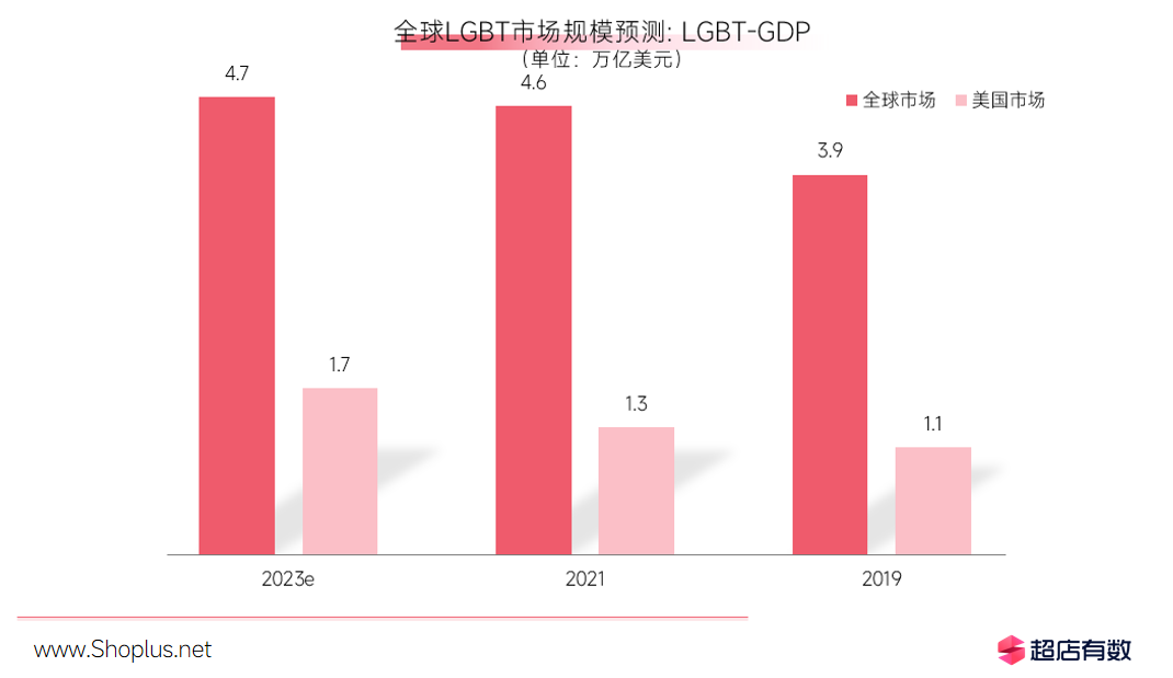 海外机构LGBT Capital数据显示,2023年全球LGBTQ人口预计达到3.8亿人,大概粗算,也就是每100人里就有5位是LGBTQ。而从市场来看,2023年全球LGBTQ的市场规模预计超过3.7万亿美元。其中,美国是最主要的市场,预计规模将达到1.7万亿美元。