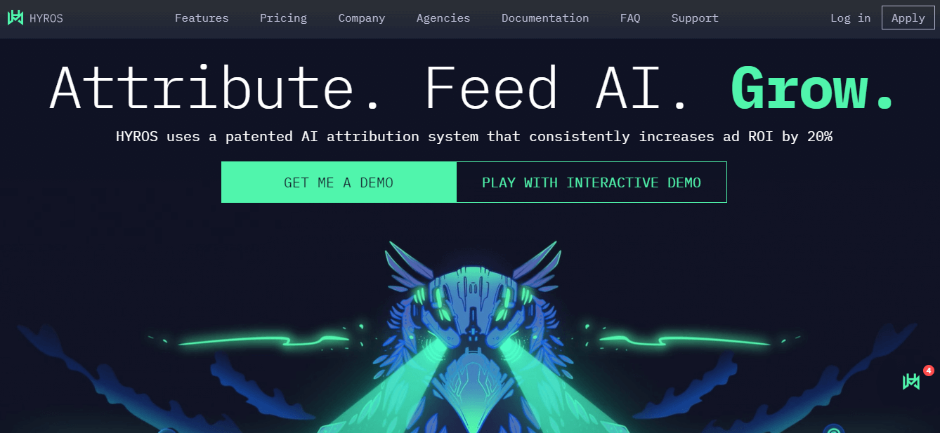 Hyros collects data using installable tracking codes and then attributes the data using “Print Tracking” before feeding it to your ad platforms’ AI algorithms to improve targeting.