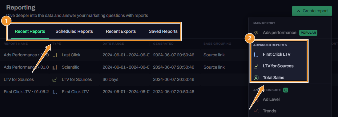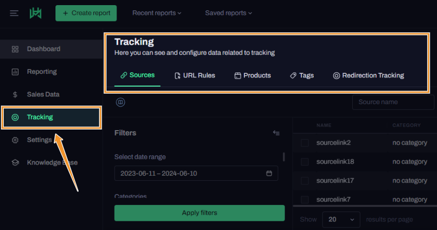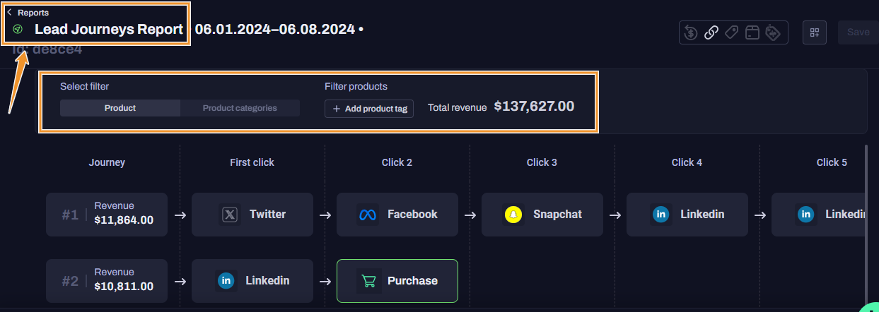 - First-click attribution, which allows users to assign sales to the first source that was clicked.