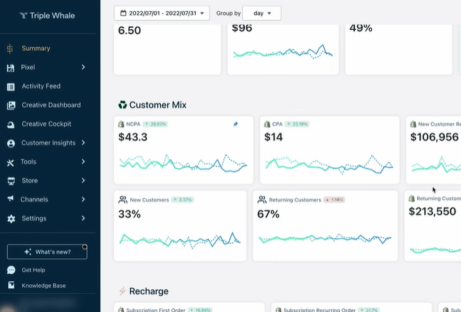 Overall, Triple Whale is ideal for large eCommerce brands looking to track, attribute, and analyze customer journey data from their Shopify store and ad platforms in a user-friendly environment.