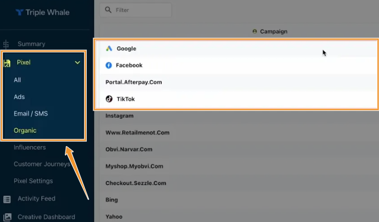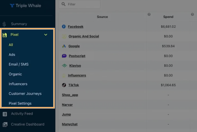 Unlike Hyros, Triple Whale is an attribution software exclusive to Shopify merchants.