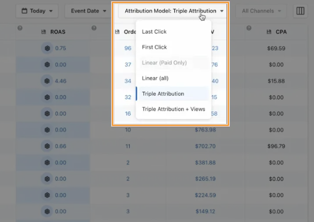 Speaking of attribution, Hyros offers multiple attribution models you can use to view attributed data from multiple angles:
