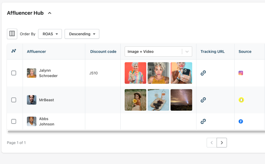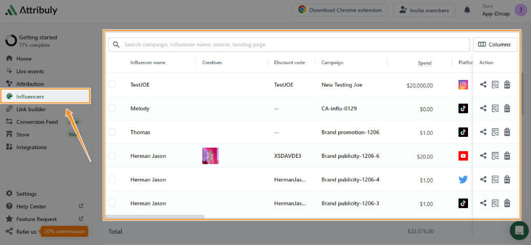 The next menu tab is the Influencers hub. It allows you to create, track, and manage your influencer and affiliate marketing.