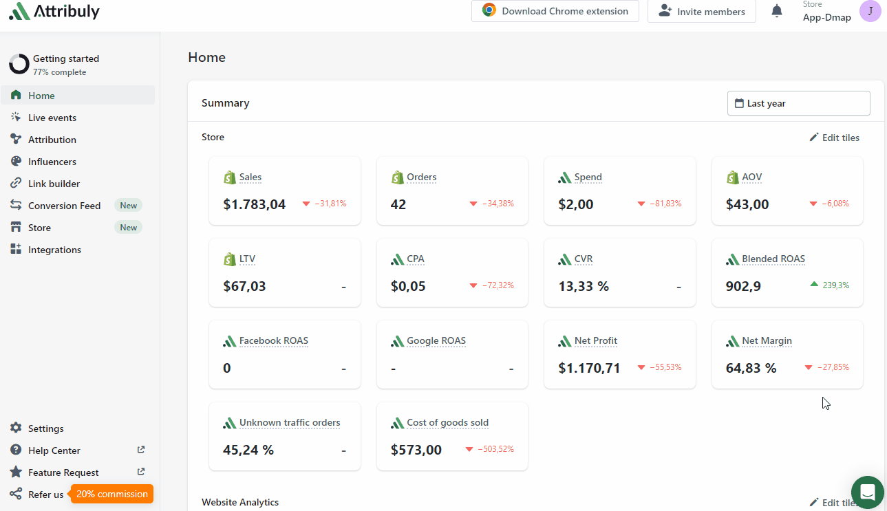 Overall, Attribuly is the ideal tool for small and medium-sized Shopify merchants who want to accurately attribute conversions, identify the best-performing campaigns, and allocate budgets effectively.