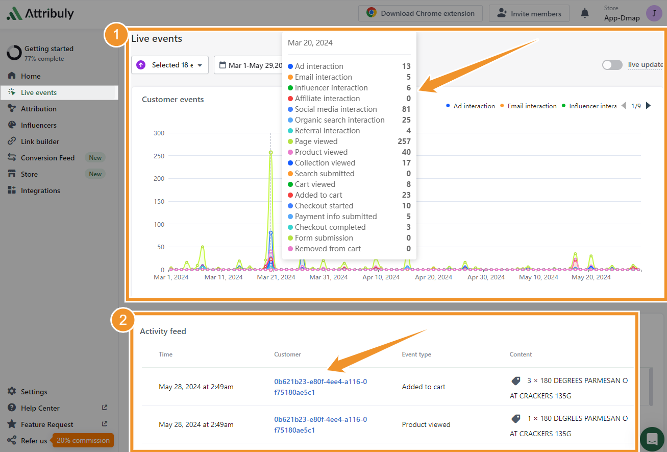 👌 Overall, Attribuly provides a customizable Home page with snapshots of key metrics, an Attribution hub to monitor traffic and identify your best-performing ad platform, and a Live Event page for real-time analytics of customer’s activities. Compared to Hyros and Triple Whale, it stands out with its Ad Automation and Conversion Feed, which can help merchants automate repetitive processes and track conversion data with precision.