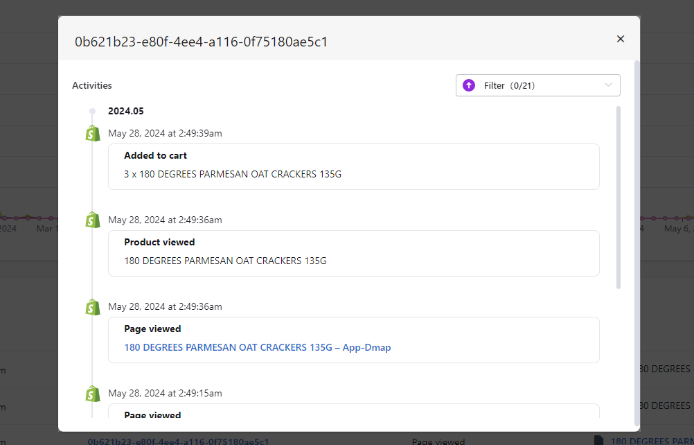For example, in the GIF below, Attribuly attributed 1,33 conversions to an ad campaign. By clicking on the value, we can see that our user Blake’s journey had touchpoints with multiple channels before finally purchasing in-store.