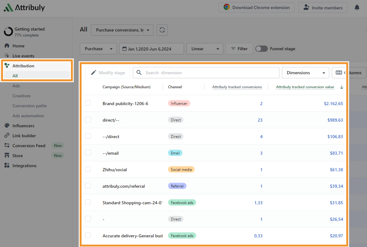 👉 Attribuly’s main strength in attribution is that it not only attributes conversions to channels and ads but also gives you exact insights into how that attribution happens.