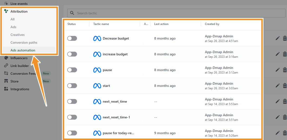 - Ads Automation — which provides templates you can use to stop ads, restart ads, increase budget, or decrease budget, based on specific presets.