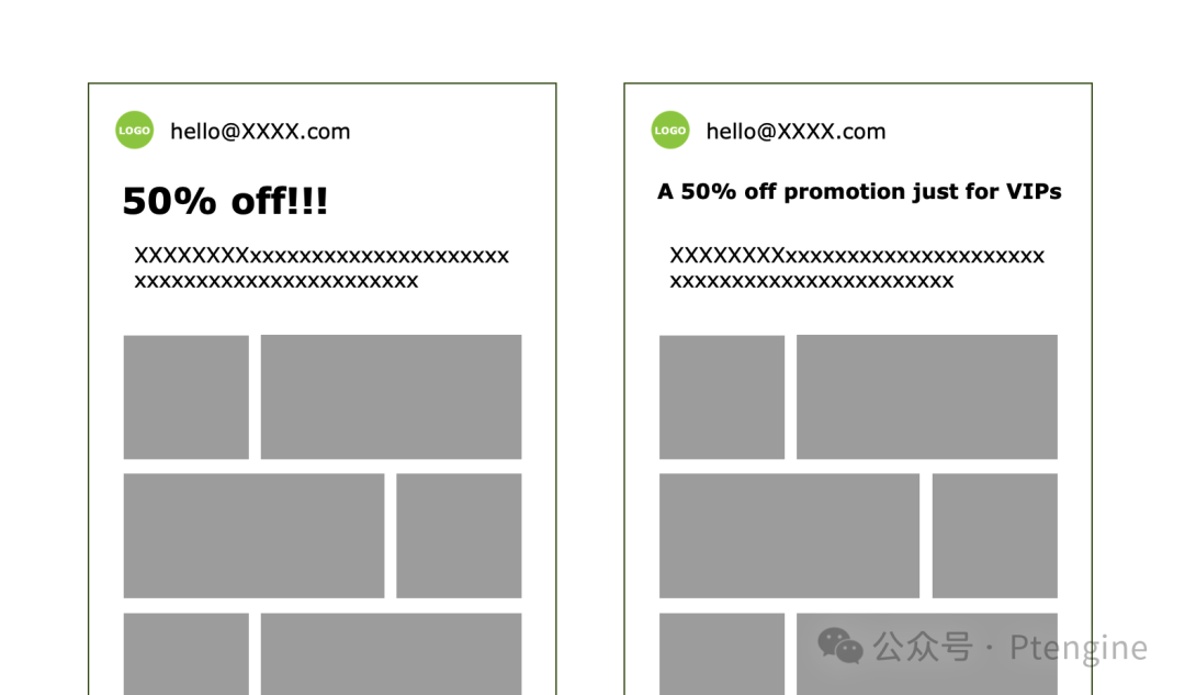 版本B:更长更详细的主题行(如:“专为我们的尊贵客户提供的50%折扣促销”)。