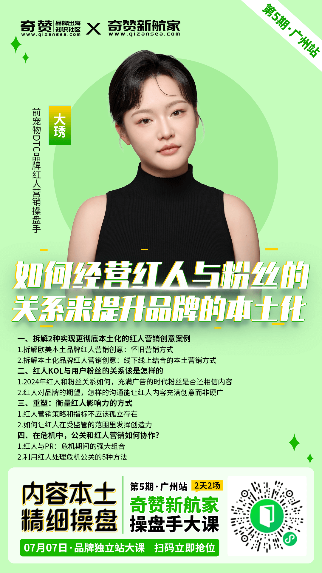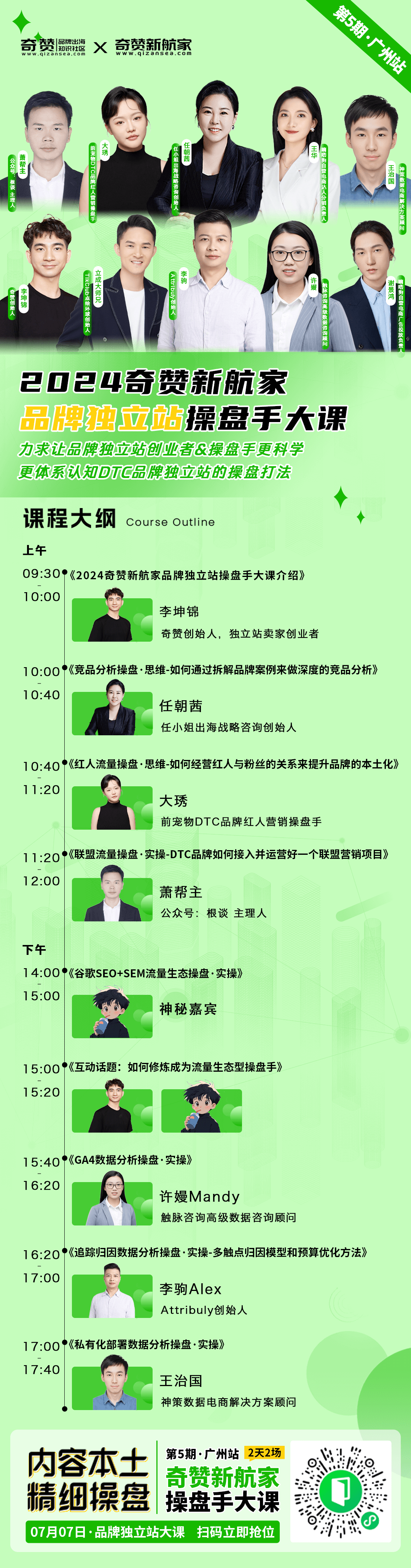 7月6日-7日,第5期·广州站|2024奇赞新航家操盘手大课!还没报名的朋友赶紧报名啦!来现场与1000位年轻出海创业者、品牌操盘手,一起搞钱!