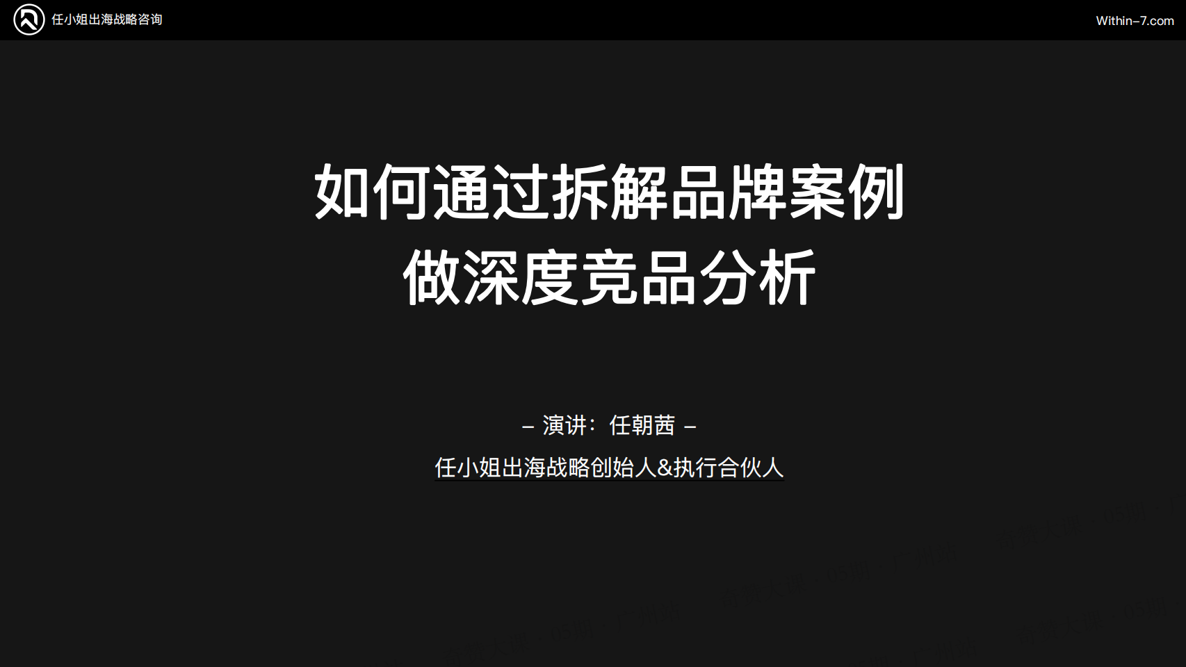 我们分享一下怎么做案例拆解。这是我们一个内部资料,是我们商业顾问的培训过程中非常重要的一环,也就是案例拆解。我会稍微解释一下,在内部并不叫做“竞品分析”,我们叫做“对标案例分析”。