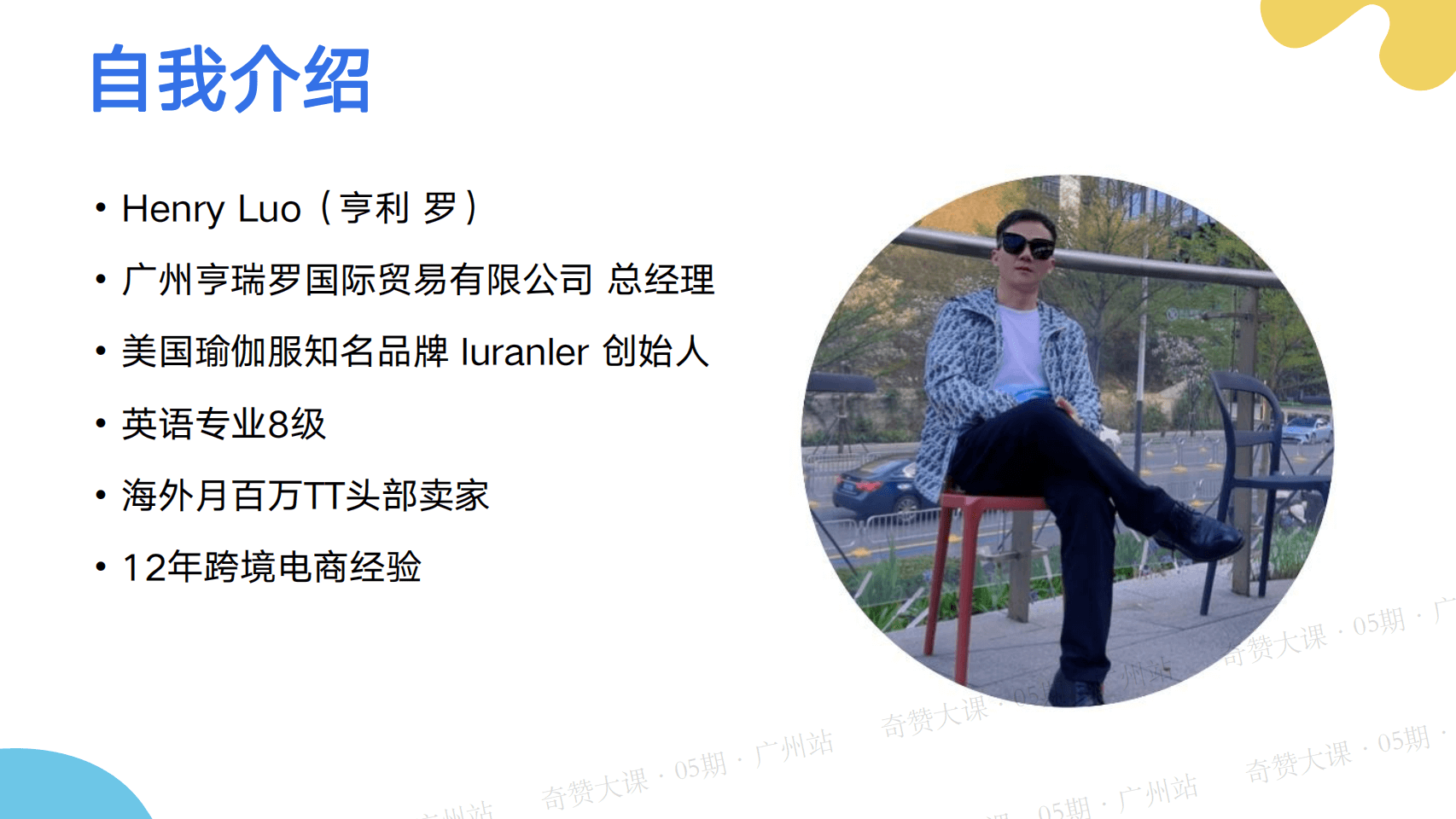 我简单介绍一下我自己,我是姓罗,我是做瑜伽服的,我是一个卖家,自己在运营小店,独立站接下来也会做。今天我讲的是《TikTok跨境电商之商品卡玩法》,我没有来过这样的场合,这也是我第一次。希望我讲之前给大家第一印象就是这个家伙有点料,他接下来可以讲一些硬的东西,一定要硬,一定要刚,我自己做小白的时候也不听吹牛逼,我一定要听硬货给到我,我今天才开心,这场席才吃得满意。