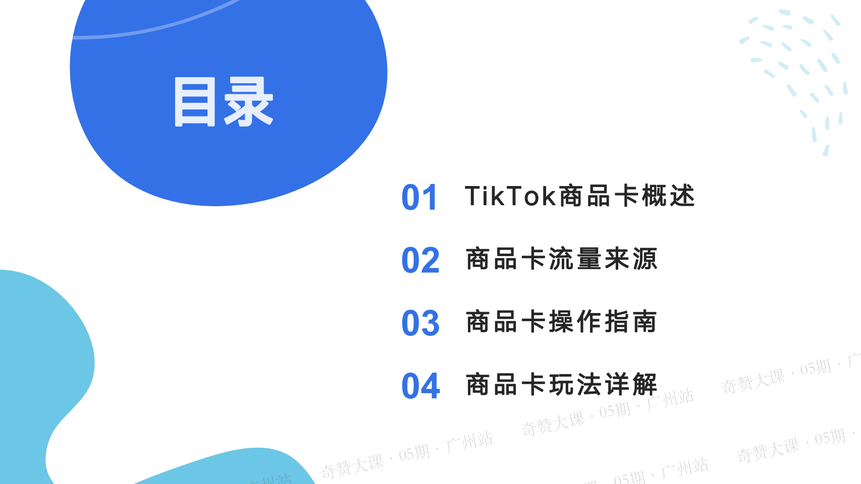 但是商品卡要怎么去玩?到底要通过哪些途径去做?接下来,我和各位一起开始上菜。首先讲一下TikTok商品卡概述,二是商品卡流量来源,三是商品卡操作指南、商品卡玩法和讲解。