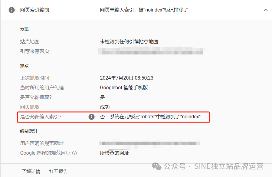 被“noindex”标记排除了
