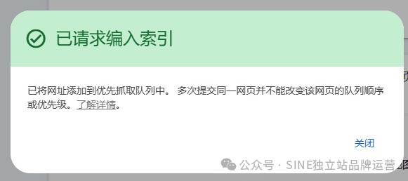 但需要注意,手动请求的次数有限制,多次请求相同的网址也不会为此开绿灯,而且不是说你请求了就会被索引,需要耐心等待。此外,谷歌也强调只有高质量有用的内容才会被索引。