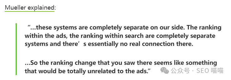谷歌一直明确表示,付费广告不会直接影响网站的自然搜索排名。谷歌的前搜索质量主管Matt Cutts曾公开声明:“Google的自然搜索结果和我们的付费广告是完全分开的系统。”谷歌为维护其搜索结果的公正性和可信度,严格将广告系统与自然搜索算法分开。这意味着如果你仅仅投放了谷歌广告,网站不做SEO优化,那么你的网站不会在自然搜索结果中获得更高的排名。