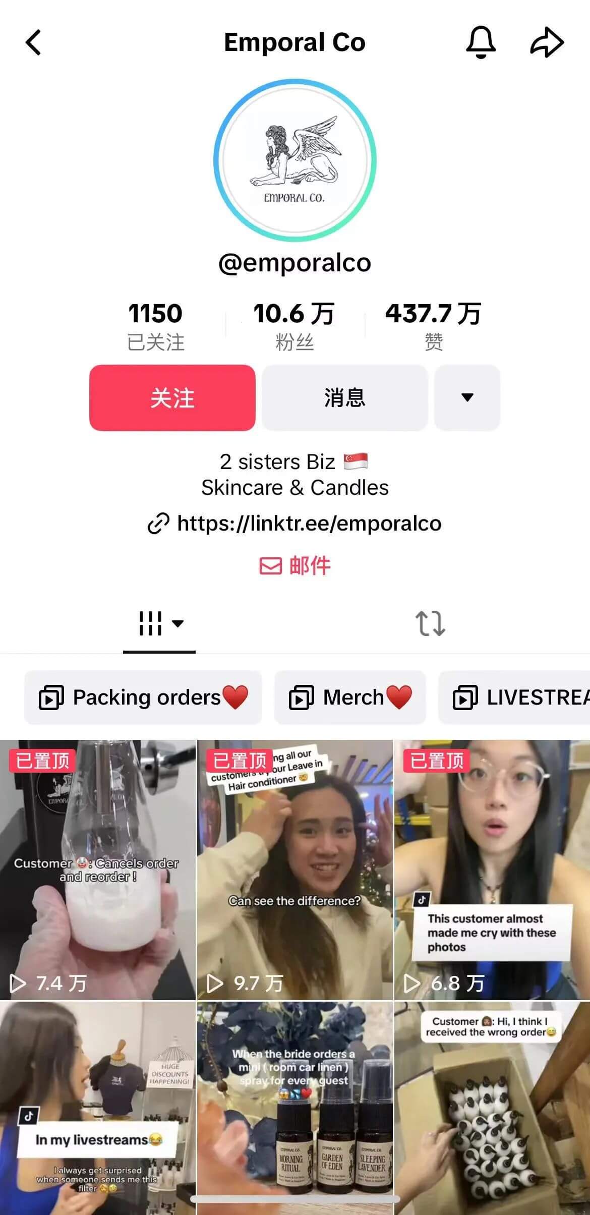 Emporal Co.在TikTok上积累了大量粉丝,通过分享创业旅程和粉丝使用产品的故事给她们带来了非常多的忠实粉丝,让一个全新的品牌迅速的建立了认知。