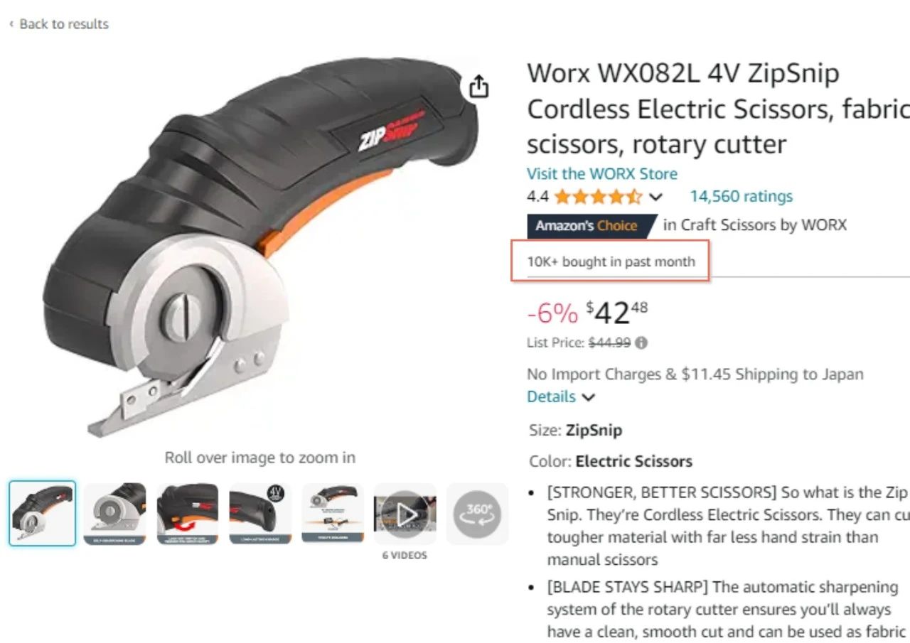 同样月销10000+的单品则是无绳电动剪刀,售价仅42.48美元。