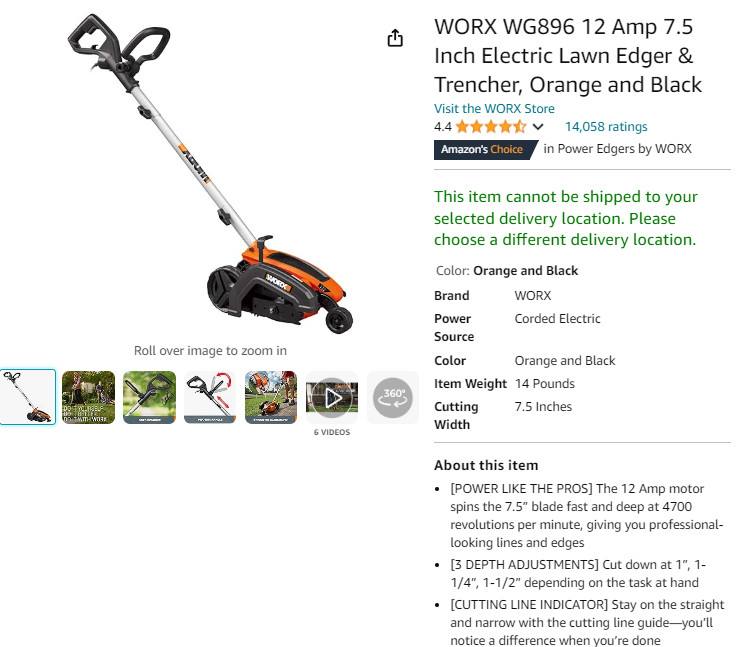 WORX修边开沟两用机,售价93.53美元,月销6000+。