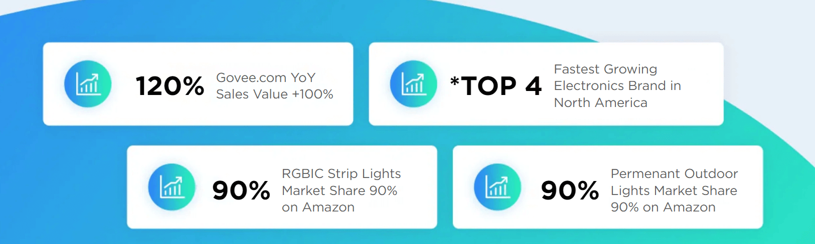 根据数据显示,Govee在亚马逊平台的市场占有率保持超水平,连续三年复合年增长率超过300%。