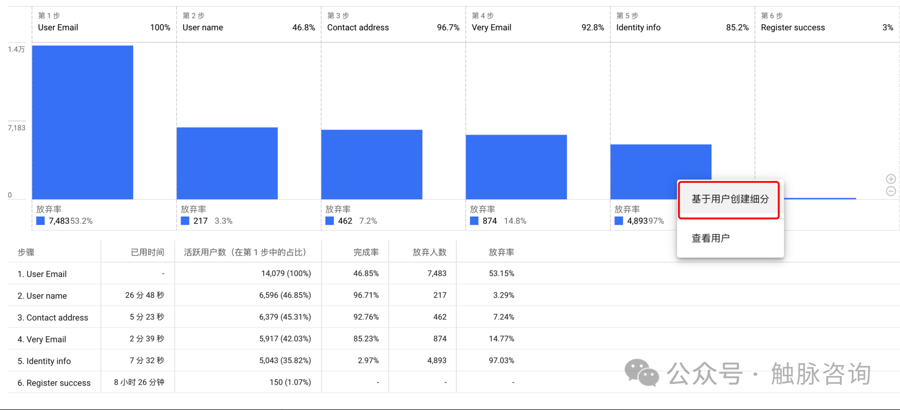 - 漏斗分析:适用于目标明确、路径单一的直线型操作产品,通过漏斗分析可以发现转化率的瓶颈环节。
