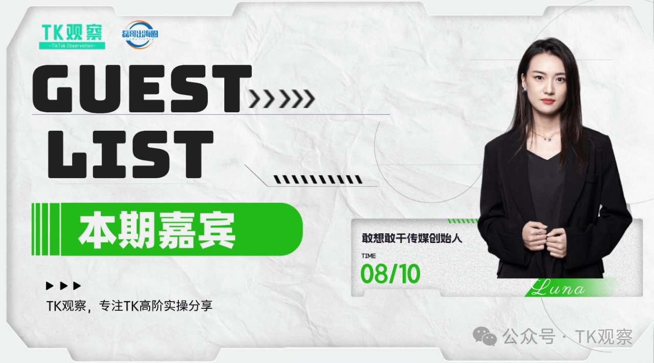 本期内容:TikTok发展已经好几年,在做TikTok的玩家中,不乏很多从国内抖音转行做TikTok的玩家,今天的嘉宾是从头部国内MCN机构无忧传媒出来的Luna(张黎)。和大部分传统卖家不同的是,Luna更关注产品内容化,内容ip化,ip情绪化来洞察产品与用户之间的关系。用“IP+”的概念来打造产品进军海外市场。Luna表示她十分看好海外二次元,三次元,周边,谷圈和Z时代年轻高消费群体。那将产品IP内容化运作,需要的能力有哪些呢?以及Luna在做TikTok的过程中有哪些精彩历程想和大家来分享呢,本期TK观察荣幸邀请到了湖南敢想敢干传媒的创始人Luna女士,请她来和我们分享这其中的故事。