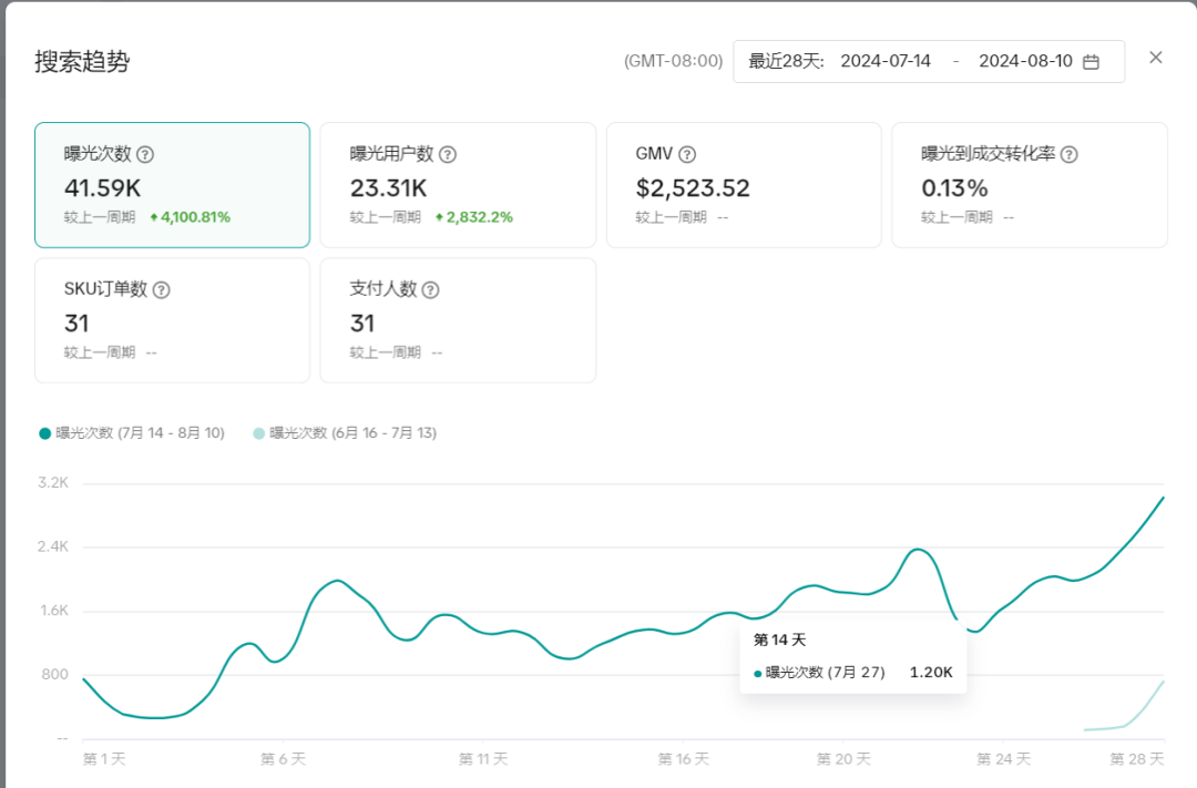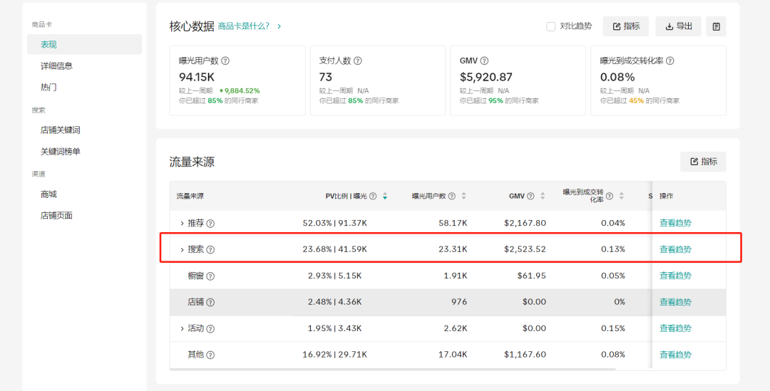 商品数据如下:其中有2500美金的GMV是搜索带来的。