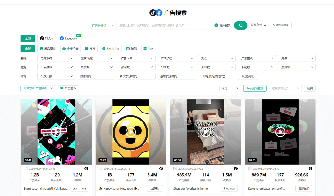 pipiads上面所有的素材,都是花钱投广告的,而且美区通用cpm5-20美金 1000个播放。抛开大品牌,像那些大结果的视频素材,能放这么大量,这一点他们的广告创意就是值得研究的。