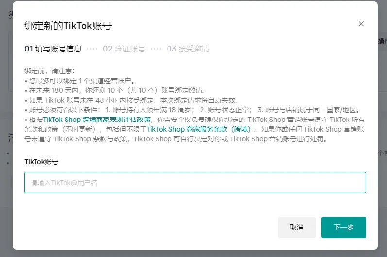 - TikTok账号已被绑定;(1个TikTok账号仅能被1个店铺绑定)