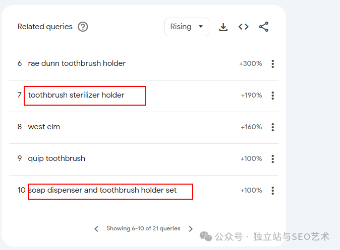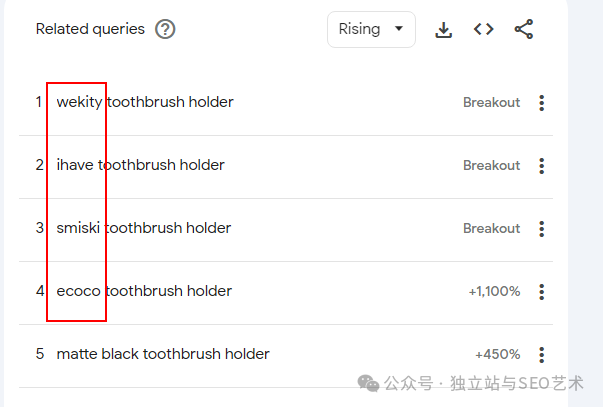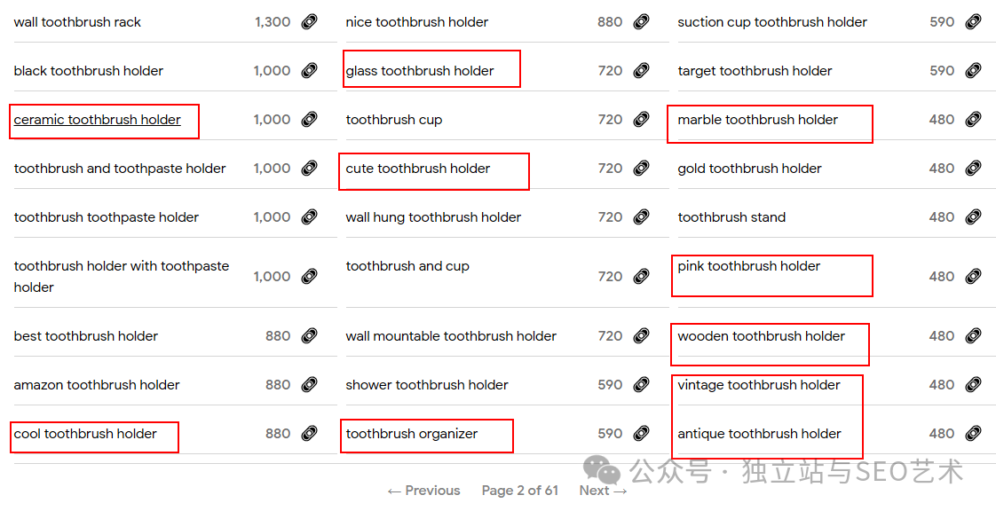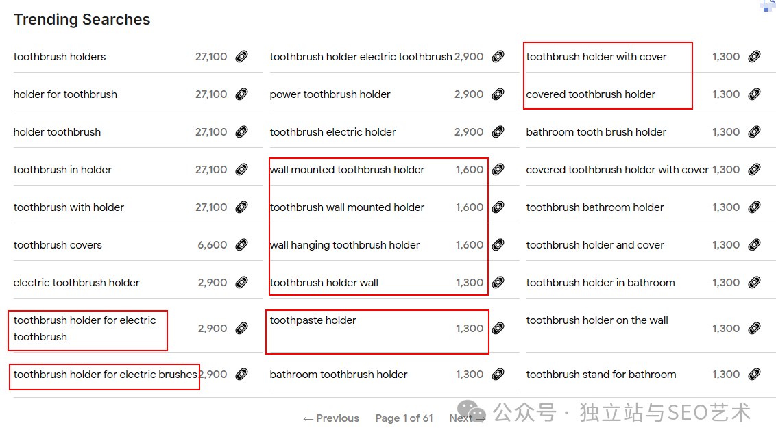 通过这种方式,可以确定产品研发方向(基于不同牙刷架的需求/趋势)、主打方向(eg. 带消毒功能的牙刷架 )及关键词布局.