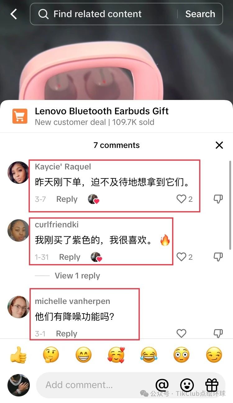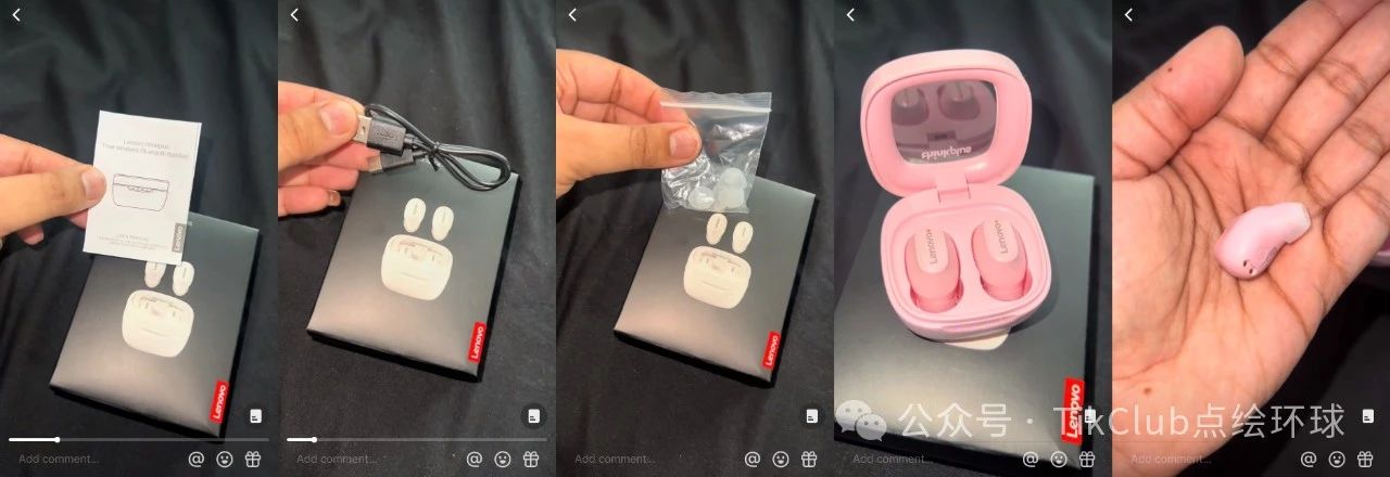 比如说这条视频,单纯展示一款耳机包含的说明书、充电线与可替换耳塞,以及达人旁白突出这款耳机的优点,评论就引来了很多有效询盘与反馈。