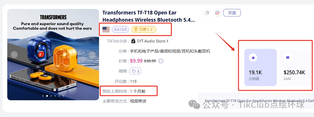 比如排第5名的变形金刚无线蓝牙包耳式耳机,1个月前才上架,现在总销量将近2万件;