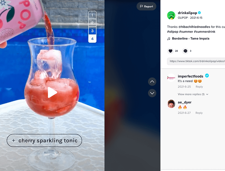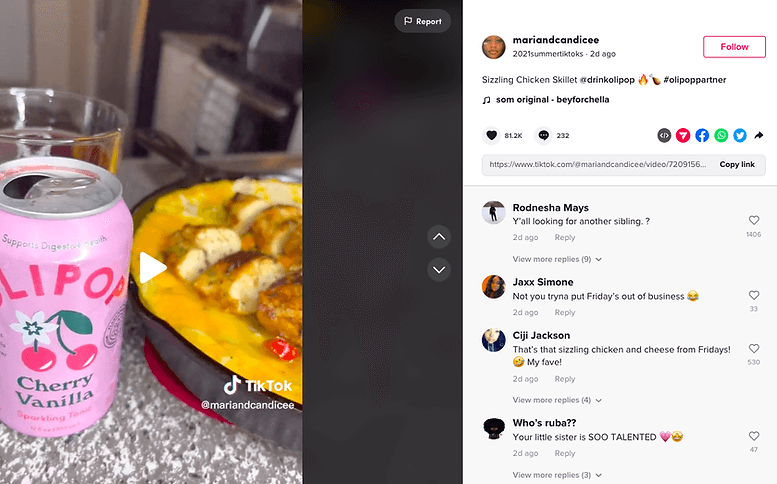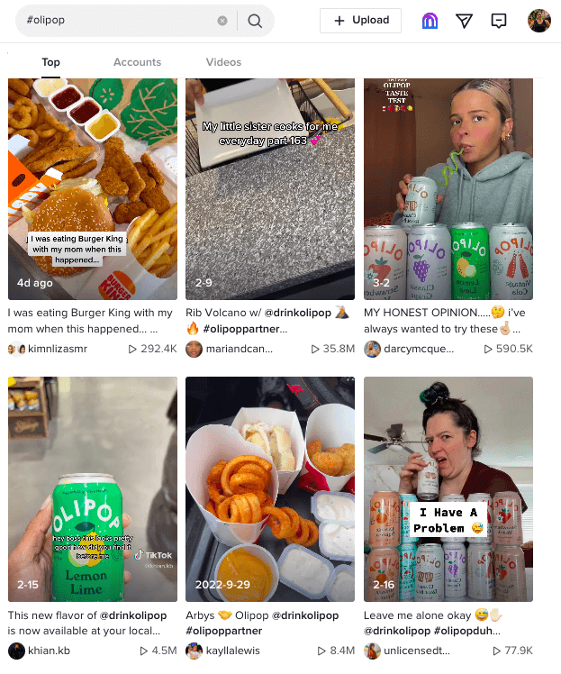 Olipop 的这种策略取得了成效,在 TikTok 上的网红营销,促使他们不断提高品牌知名度并拓宽新的受众。他们自己和创作者的视频在 TikTok 上获得了数百万次观看量。