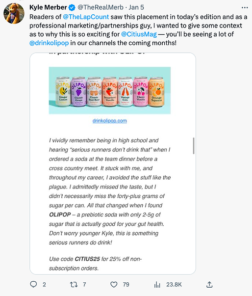 - 适应平台的内容形式:Olipop从推动促销码和专门的视频转向在有机内容中进行产品植入,这是一种聪明的举动。这种方法强调了根据平台和受众需求调整网红营销策略的重要性。