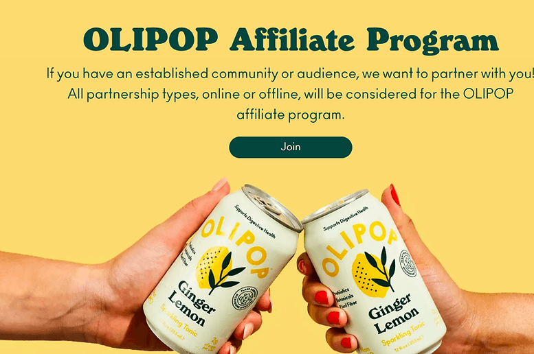 除了雇佣创作者来管理他们的TikTok账户,Olipop还投资建立了一个附属程序。在他们专门的附属页面上,Olipop鼓励所有类型的合作伙伴,无论是线上还是线下,都加入他们的程序。