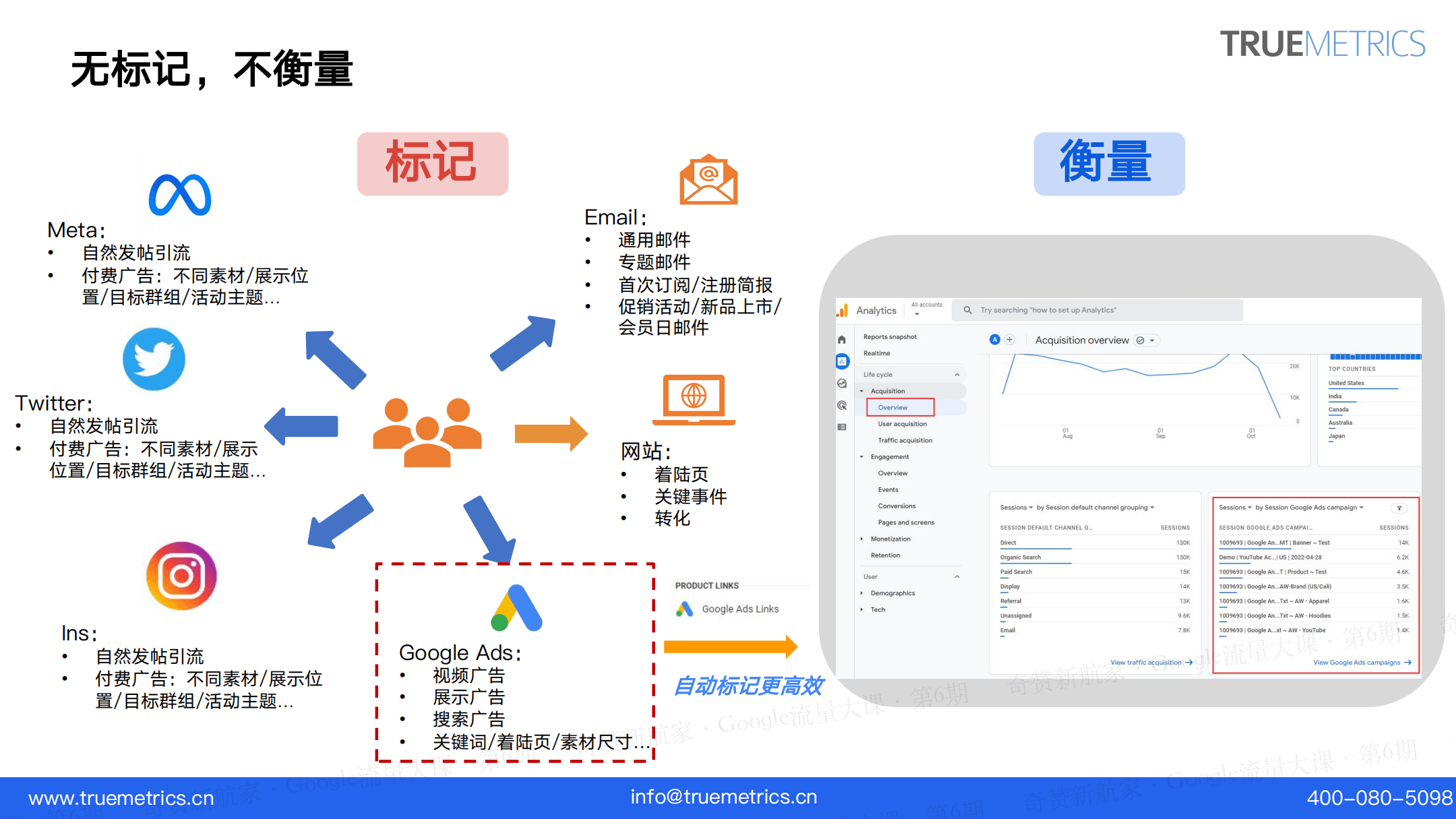 我们要做好相关的衡量,上半场有小伙伴说了,如果投Google广告或者Youtube广告会有对应的代码,你放在独立站中就可以帮你做一些监测。但往往,我们服务的企业近百家,问题往往出现在最基础的设置上,比如代码安装错了,安装错的时候是怎么发现的呢?就是大家在大促期间定时盯转化效果的时候突然发现流量没了,或者突然发现流量下跌了,这个时候才想起来我的数不对。这个时候原则上应该在大促阶段、阶段准备就要让这个事情准备好。