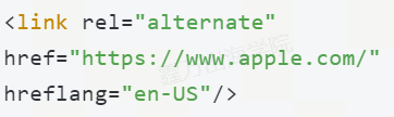 <link rel=”alternate” href=”网页URL” hreflang=”语言代码”>