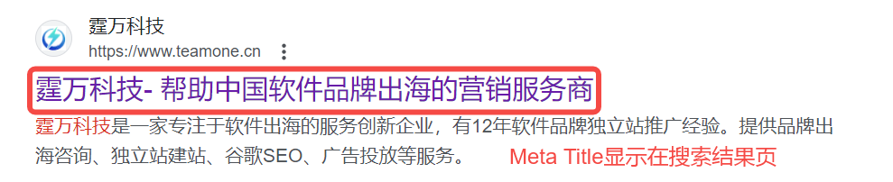 Meta Title,即网页标题,是用来判断网页主题的Meta Tag,是非常重要的一类Meta标签。除了在HTML语法中影响爬虫的爬取外,Meta Title也会显示在SERP中,是决定用户是否点击网页的关键因素。