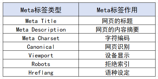 在明白了Meta标签的重要性后,我们就可以具体了解下对SEO影响最大的几类Meta标签总共有哪几类了。一般来说有以下7类: