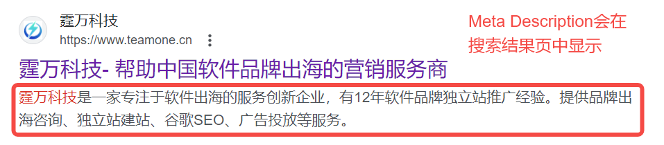 而和Meta Title经常一起被讨论提及的就是Meta Description了。它一般被看作是网页内容的精选摘要,和Meta Title一样,也会在SERP中显示。