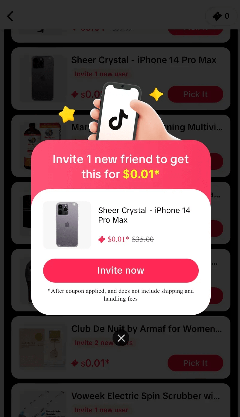此前,TikTok 更是效仿 TEMU 在美区推出拉新奖励活动,老用户邀请新朋友注册加入平台后,只需支付运费即可享受 1 美分购买原价在十几美元至上百美元的热门商品,试图通过这种奖励机制源源不断吸引更多新用户加入平台,并提升老用户的活跃度,以巩固 TikTok 在美国市场的地位。