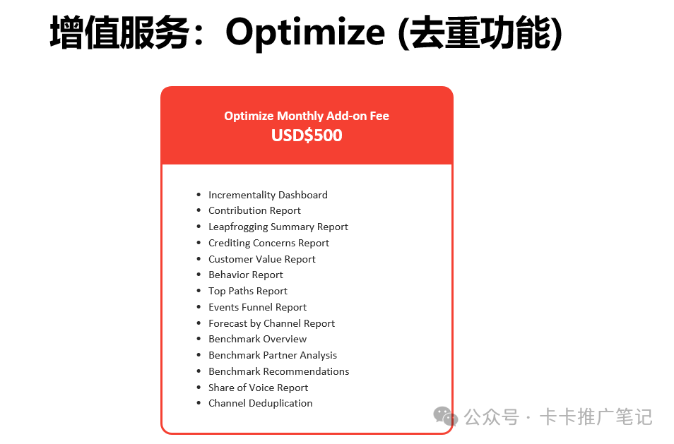 平台还有付费的功能可选:Optimize功能($500/month)、Monitoring功能、Policy、Promo Code Monitoring等。