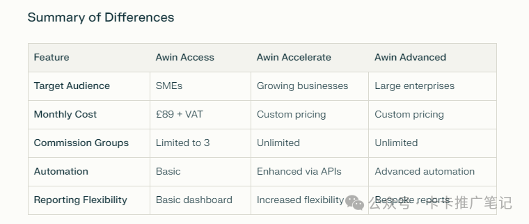 优势:Awin平台资源众多,特别是收购了ShareASale和Commission Factory, 大大增加了北美和澳洲,亚太资源数量,可以满足品牌所在市场针对性拓展;可以根据品牌需求选择对应的套餐进行合作。