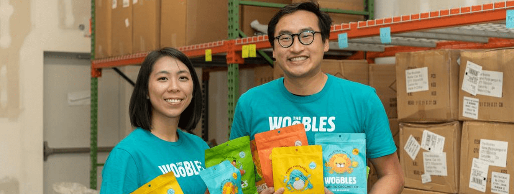 在这个热潮下有一对亚裔夫妇在美创业做毛线编织玩具,仅靠一个在国内售价不超20元的DIY毛线编织玩具套件,却在海外以35至45美金的价格出售,年入百万美金,这个创业神话就是DIY毛线编织玩具品牌The Wooble。