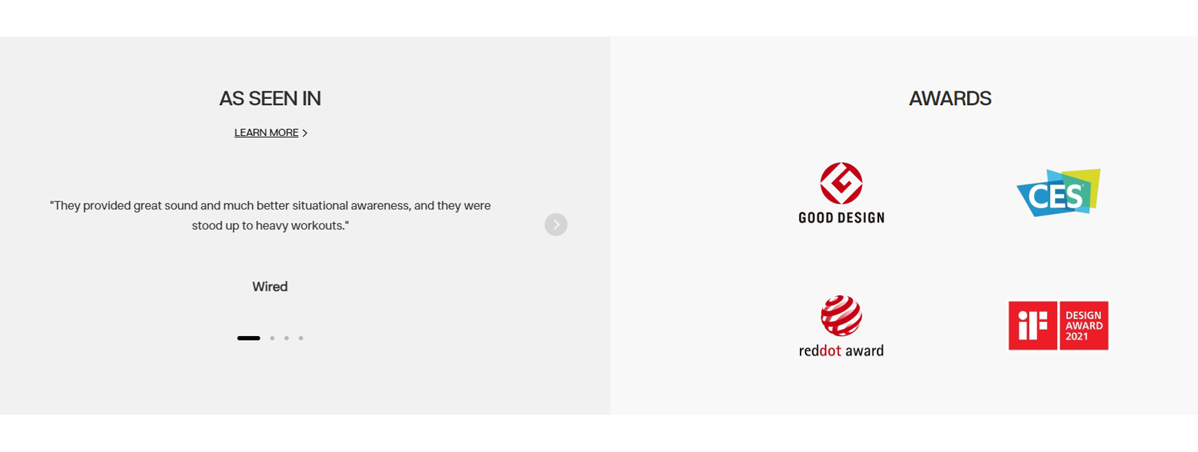 2015年,搭载悬浮减震技术的Titanium发布,斩获德国红点设计奖和日本优良设计奖 ……直至搭载Shokz TurboPitch™ 低频增强技术的OpenRun Pro上市,让骨传导开放式耳机有了足以媲美传统入耳式耳机音质的实力,也让Shokz韶音成为了骨传导运动耳机的代名词。