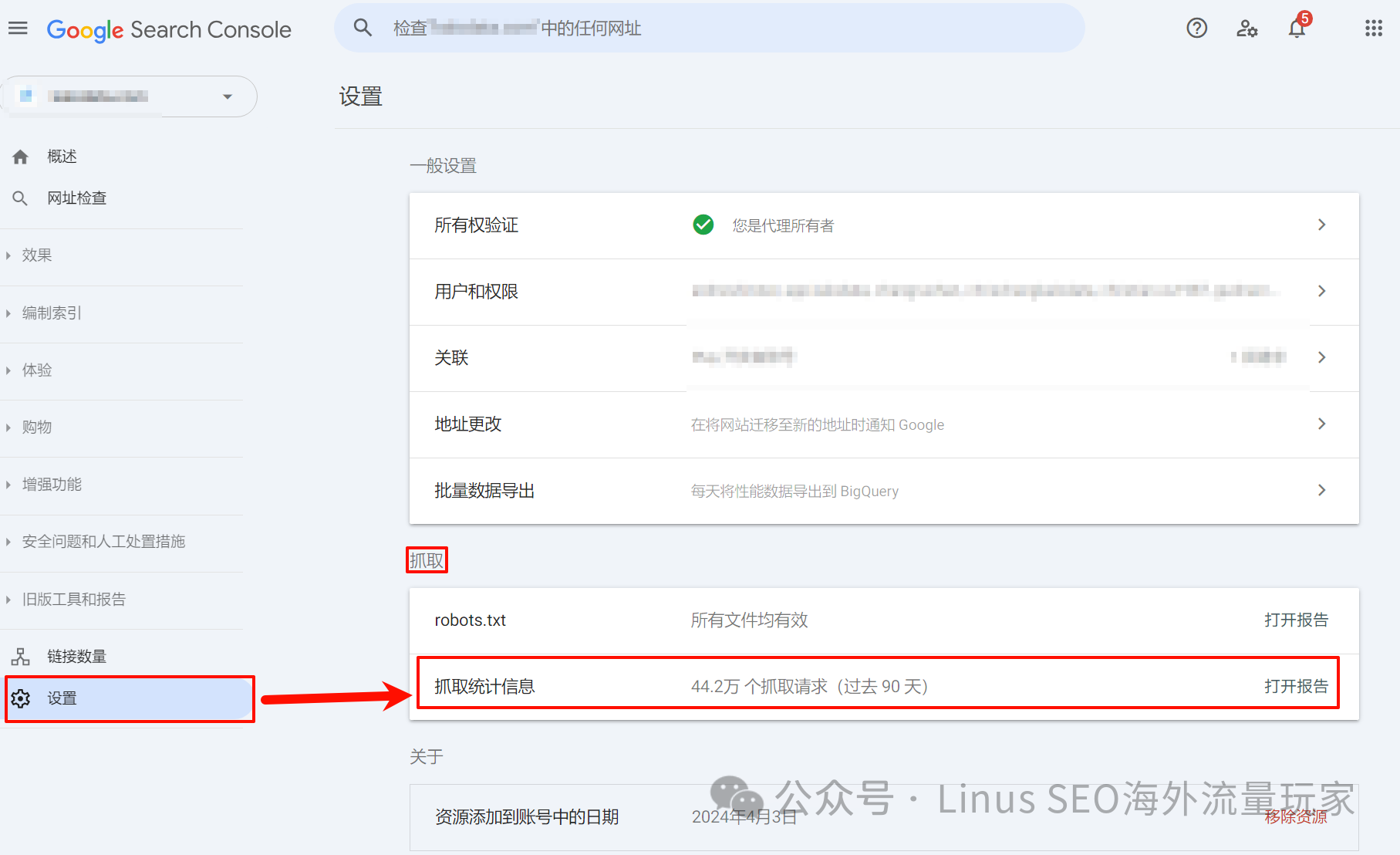 - 2. 在“设置”页面上,找到“抓取统计信息”(Crawl Stats)[4]并点击进入。
