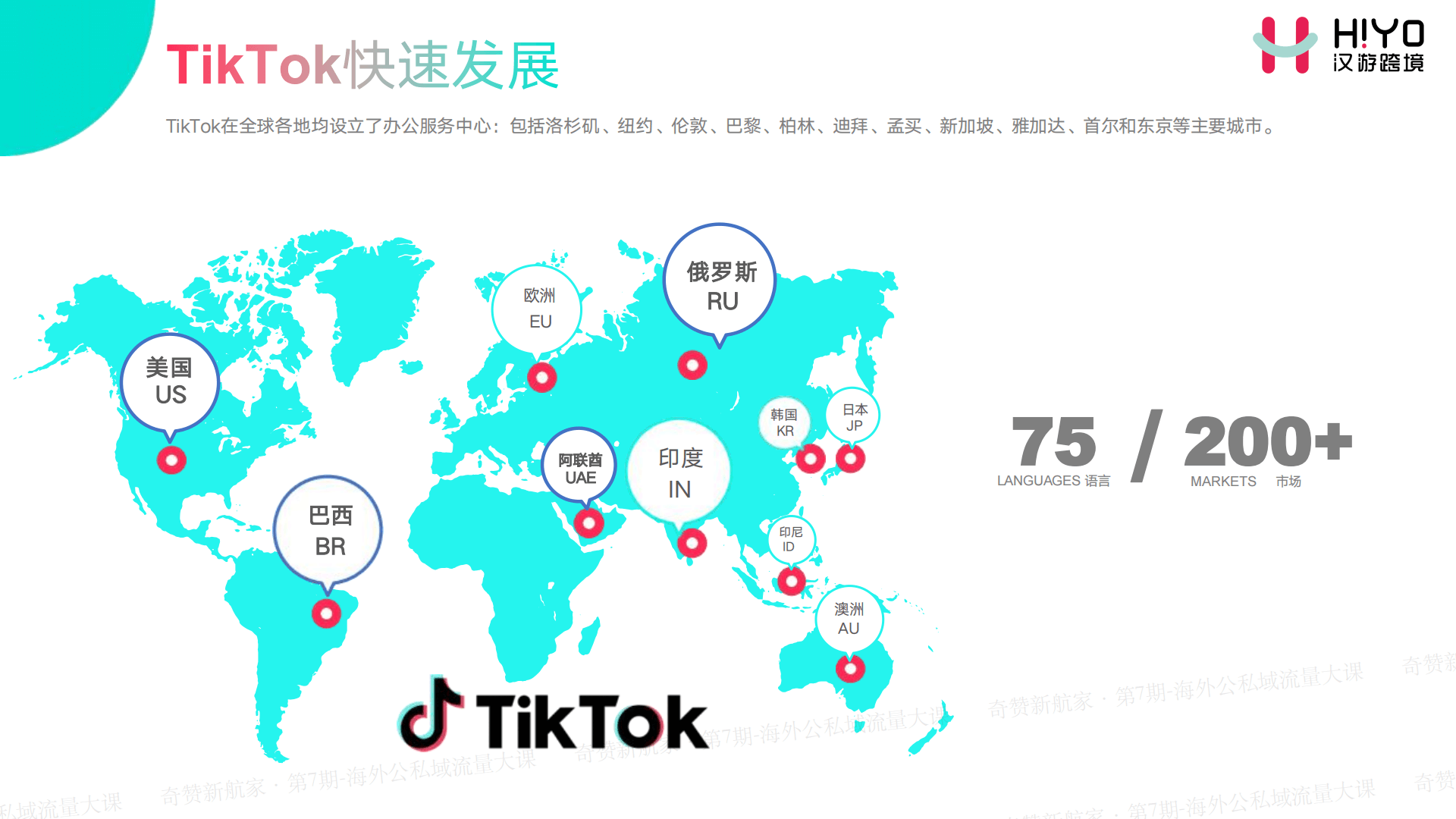 TikTok在全球是什么情况?在全球有75个语言,200多个国家和地区。在我两三个月前分享的时候还是140个国家和地区,现在有200多个国家和地区在使用TikTok。