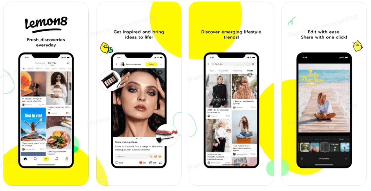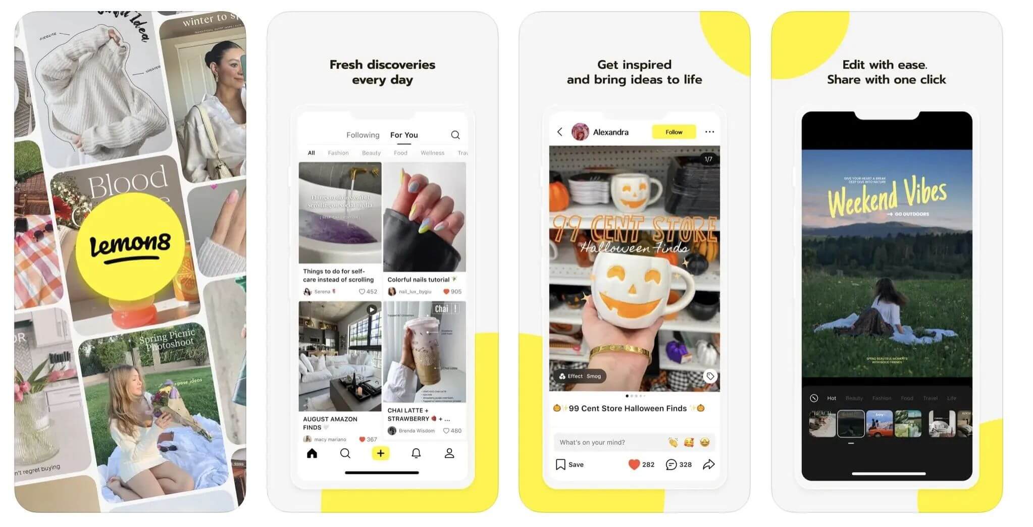 Lemon8的前身是Sharee,一个2020年在日本上线的、主打图文分享的平台。2021年9月正式更名为Lemon8,品牌的主题色也由此变成了柠檬黄。