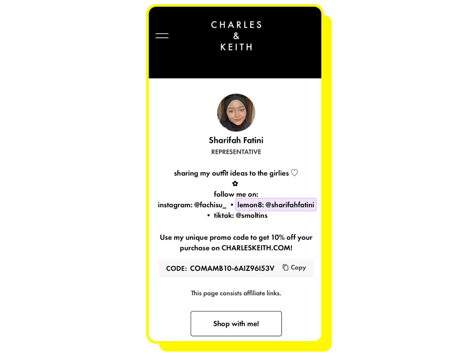 快时尚品牌Charles&Keith就是这么做的。这个品牌还没有在Lemon8上发布一条帖文,但是就已经和多位KOL达成合作了,其中甚至还有brand ambassador(品牌大使)。